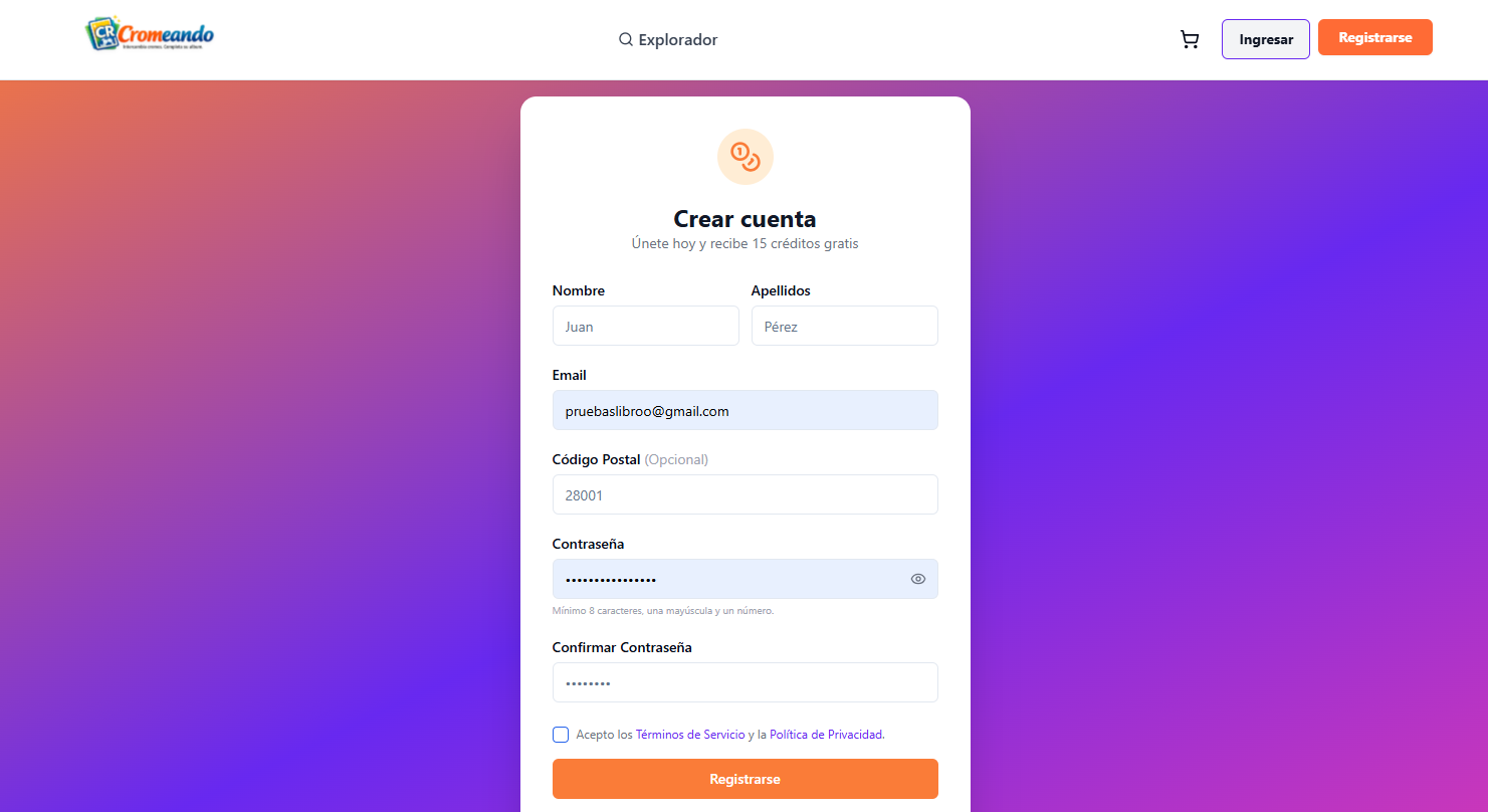 El registro permite identificar a cada usuario, gestionar sus cromos, controlar los intercambios y garantizar que el sistema funcione de forma segura, ordenada y justa para todos.