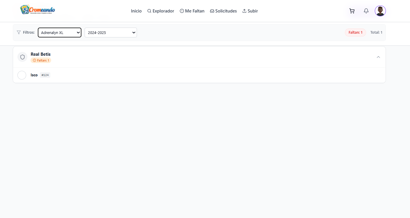 Esta sección te permite mantener tu colección siempre actualizada y gestionar fácilmente qué cromos ofreces para intercambio en cada momento.