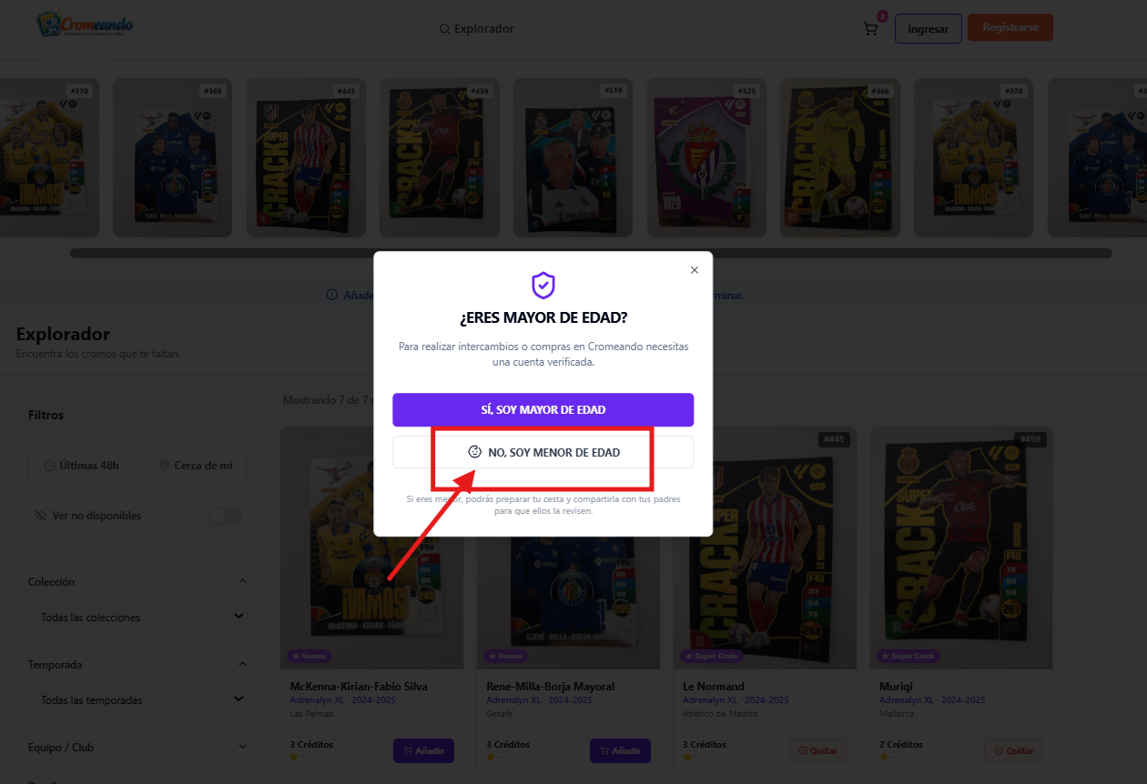 Explorar cromos de forma segura y sin registro